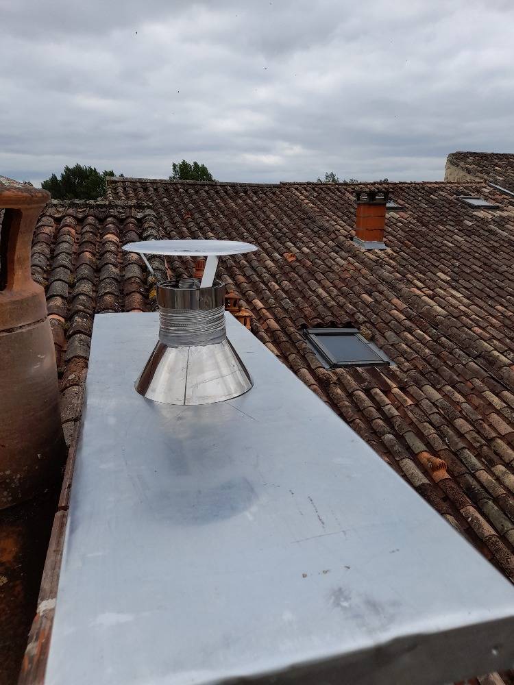 - Ensuite, les installateurs ont procédé au tubage de la cheminée avec un conduit double peau flexible.