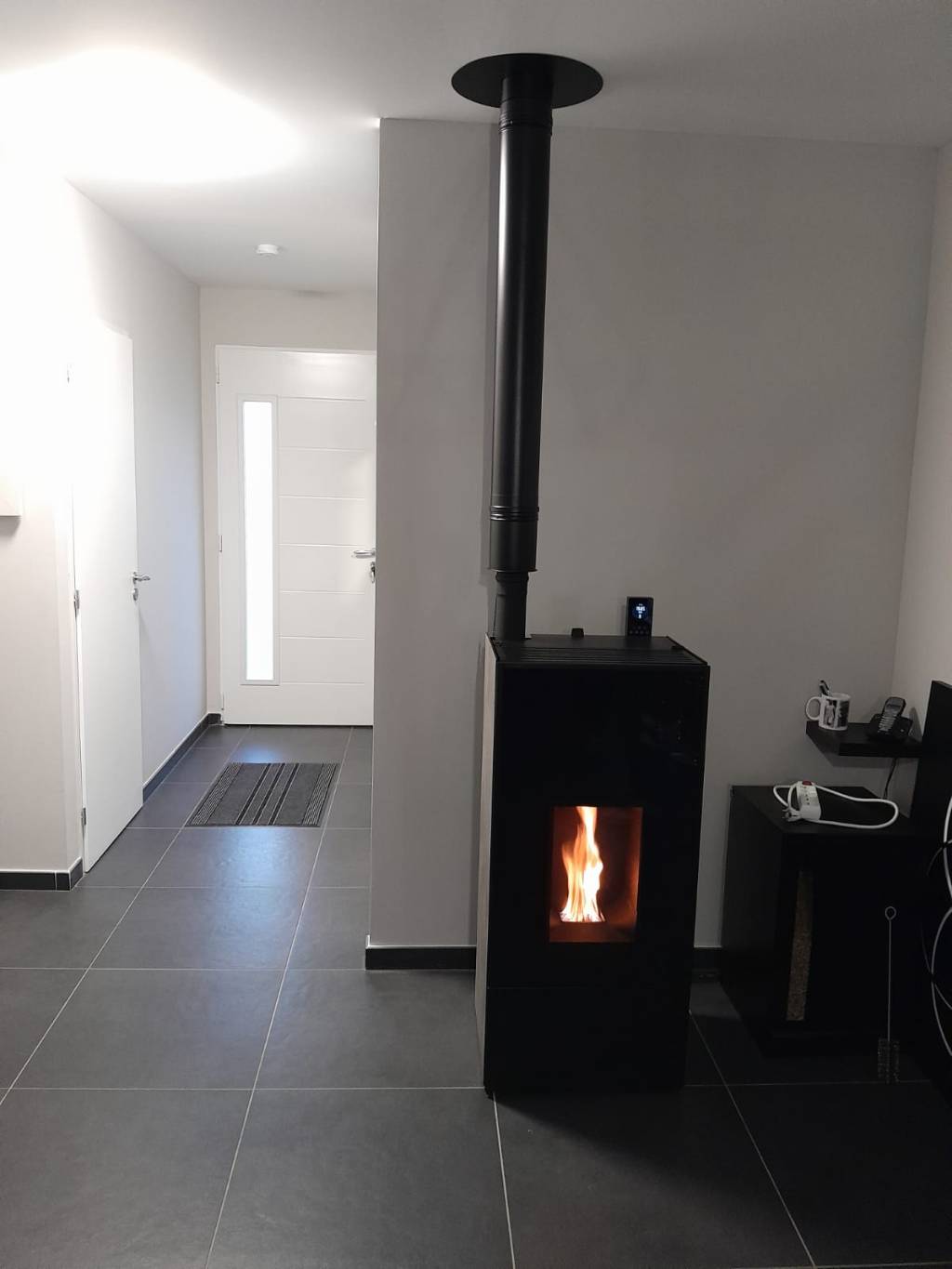 Chantier de rénovation énergétique avec l'installation du poêle à pellets EIKO MCZ à convection naturelle sur la commune de Langon en Gironde (33)