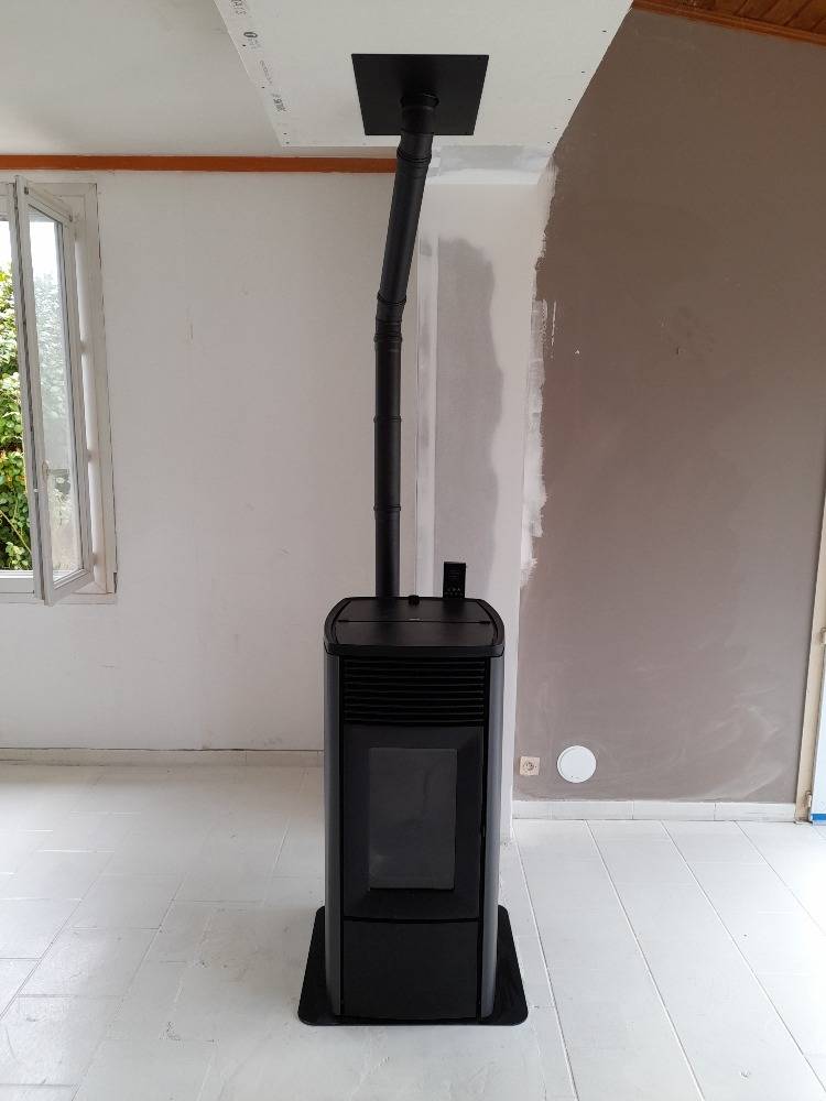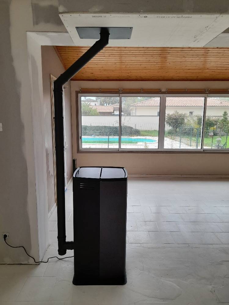 Chantier d'installation d'un poêle à granulés MCZ en remplacement de cheminée sur la commune de Bazas en Sud Gironde (33).