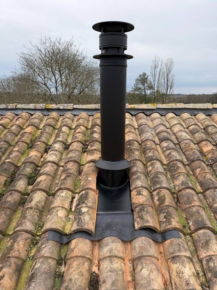 Chantier de rénovation de chauffage au bois par l'installation d'un poêle à bois avec buche de 50 cm sur la commune de Savignac en Sud Gironde.