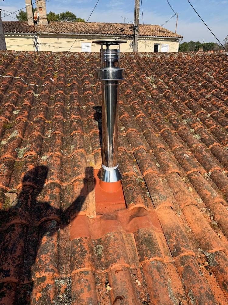 Installation d'un poêle à granulés plat avec ses tuyaux - Entreprise RGE