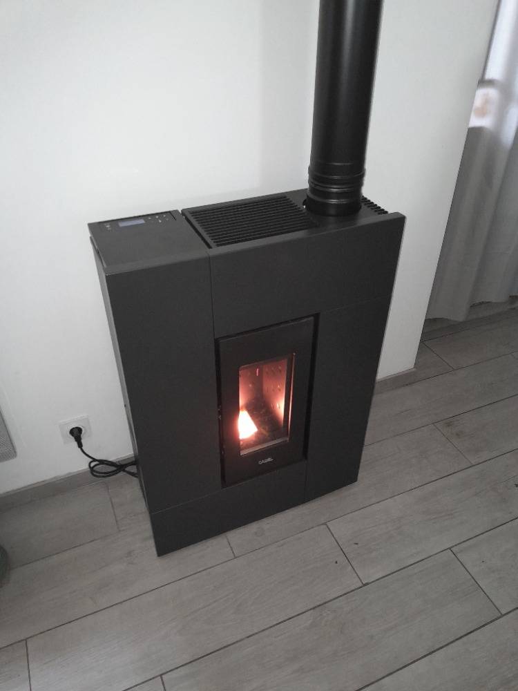 Installation d'un poêle à granulés Cadel Grace sur la commune de Preignac prés de Langon en Sud Gironde.